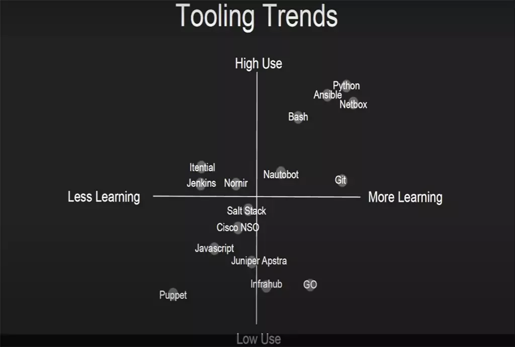 Сама циска позиционирует NSO как грядущую замену Ansible. Взлетает плохо (смотри картинку про Tolling Trends). Сидел и думал (вы правильно поняли): Вроде бы всё есть, почему не летит (ломят цену, только появилось)? Ответа у меня нету (если знаешь/работал/в теме, напиши). Тем не менее, попытка засчитана. Кстати, можно запросить триальную версию и попробовать NSO бесплатно (если докажешь/поверят, что ты “иностранец”).