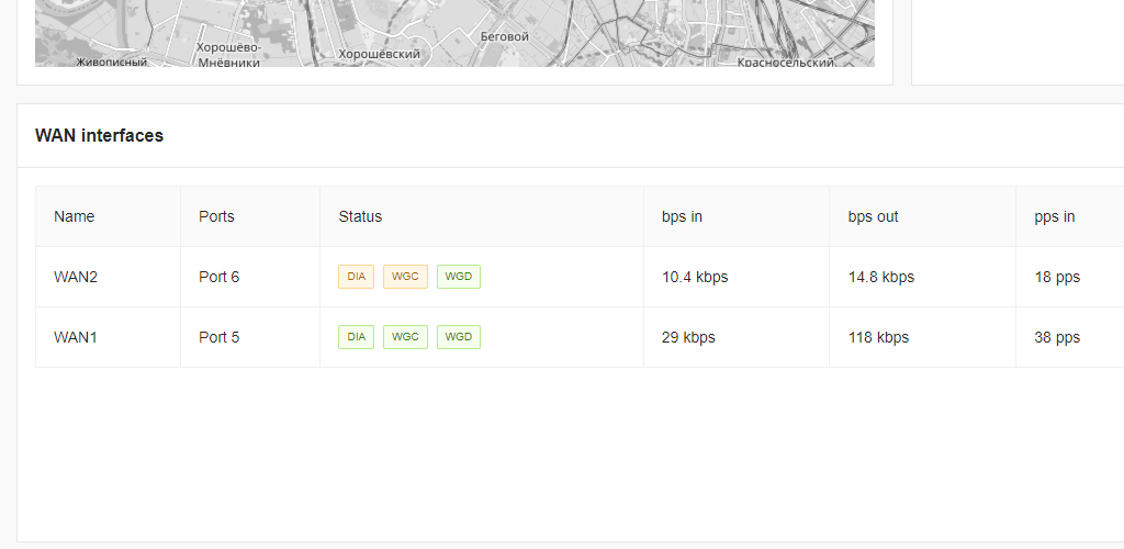 В случае использования под WAN каналы интернет соединений, работа SD-WAN BI.ZONE полностью зависима от текущего состояния этих соединений.
